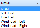 shows a drop-down list of distributed loads defined by the user in a